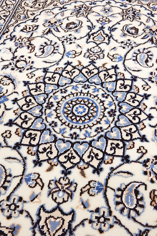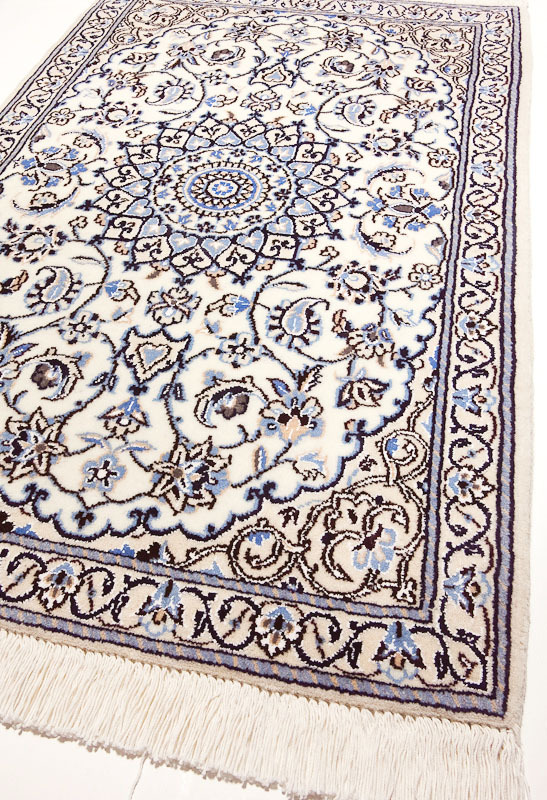 | 商 品 名 | 手織りペルシャ絨毯 ナイン ノーラ、ウール(一部シルクを使用)、96x62cm、ベージュ |