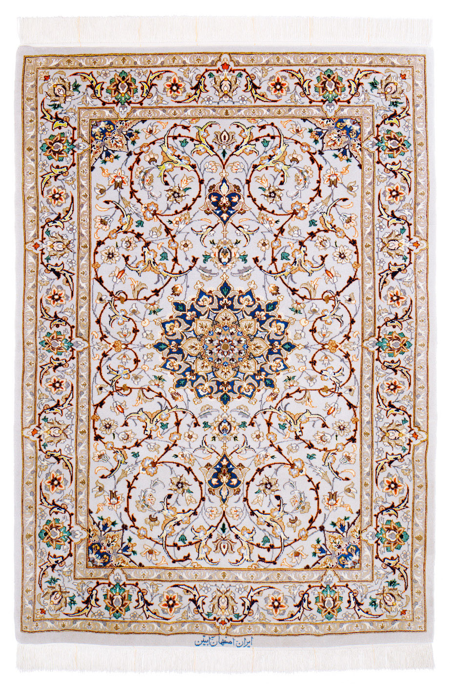 商 品 名 | 手織りペルシャ絨毯 イスファハン、ウール(一部シルクを使用)、120x80cm |