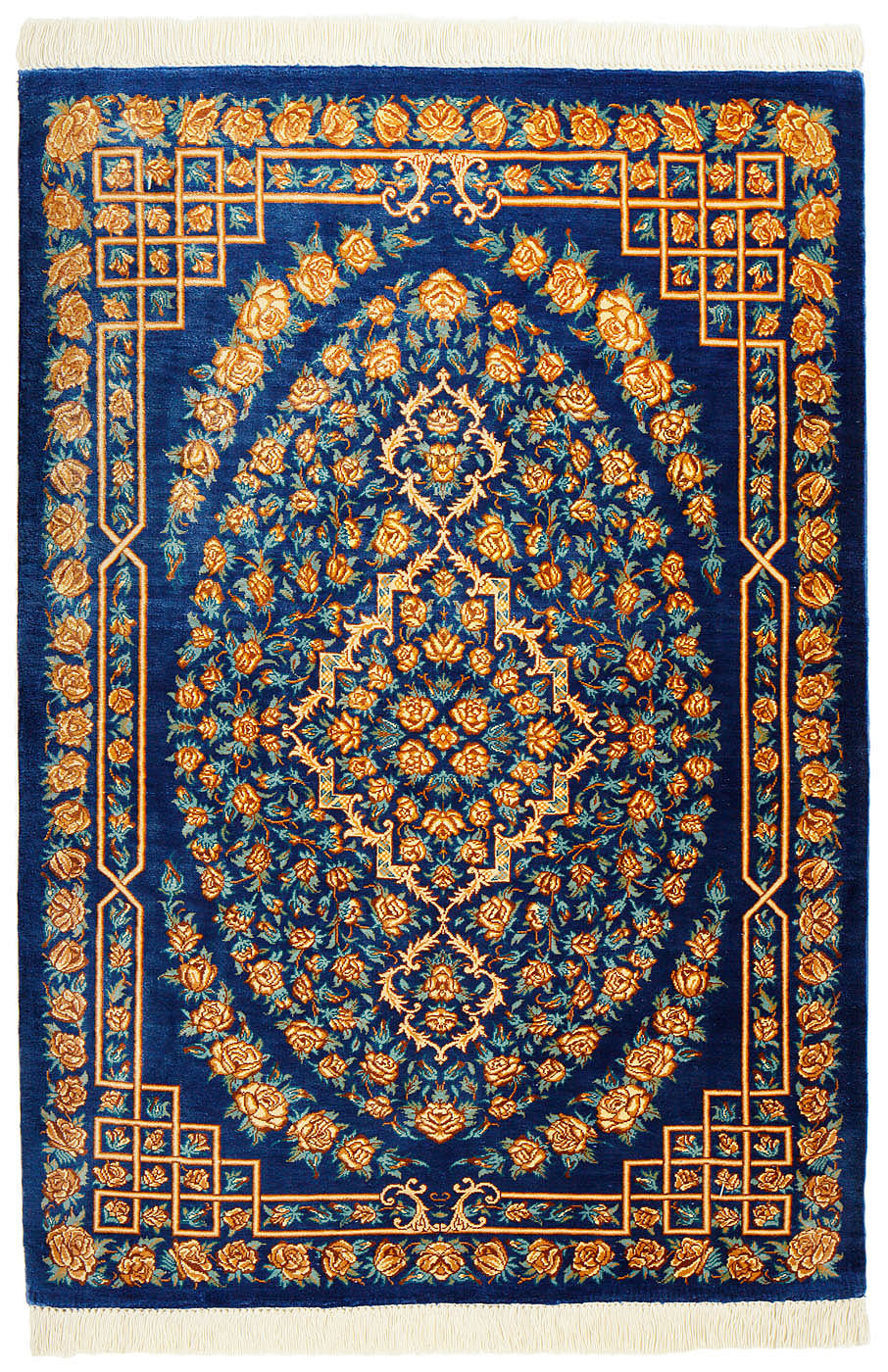 ペルシャ絨毯ペルシャ絨毯大産地クムsilk100bluesize-pushtisale