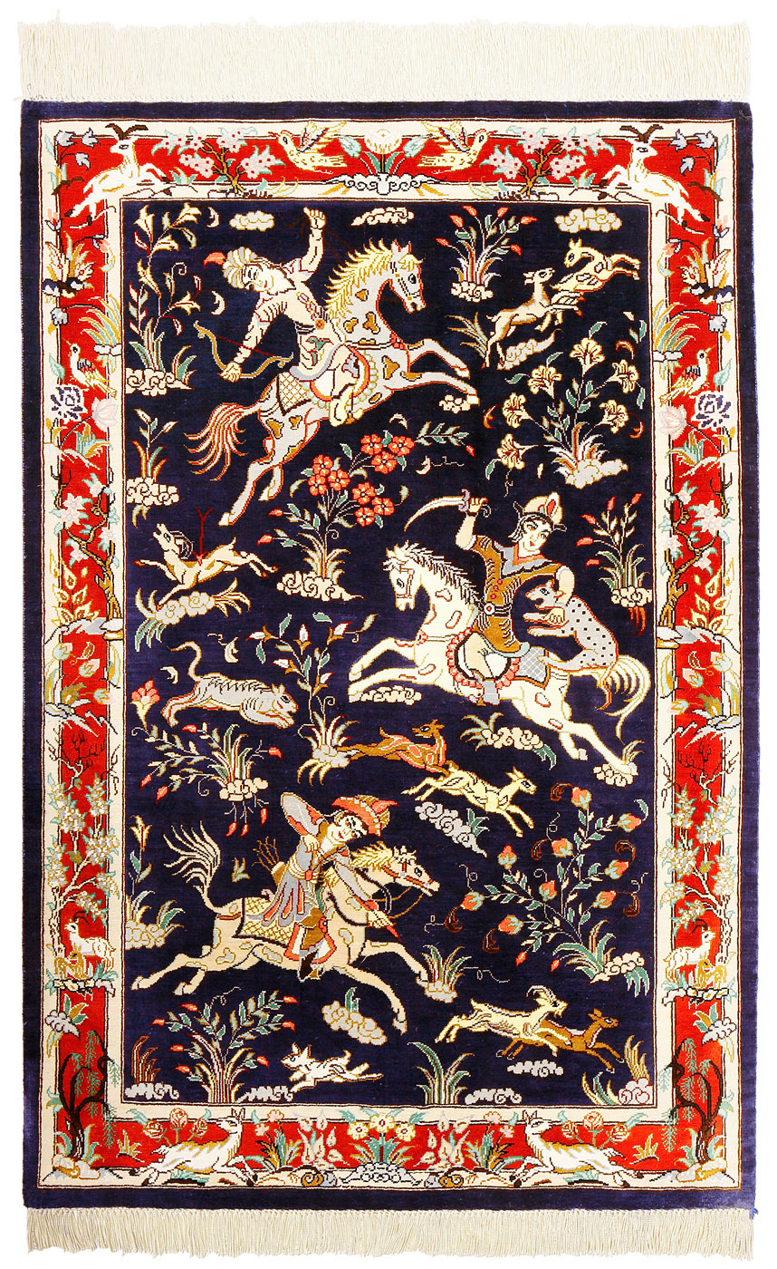 ペルシャ絨毯ペルシャ絨毯大産地クムsilk100dark-bluesize-pushtisale