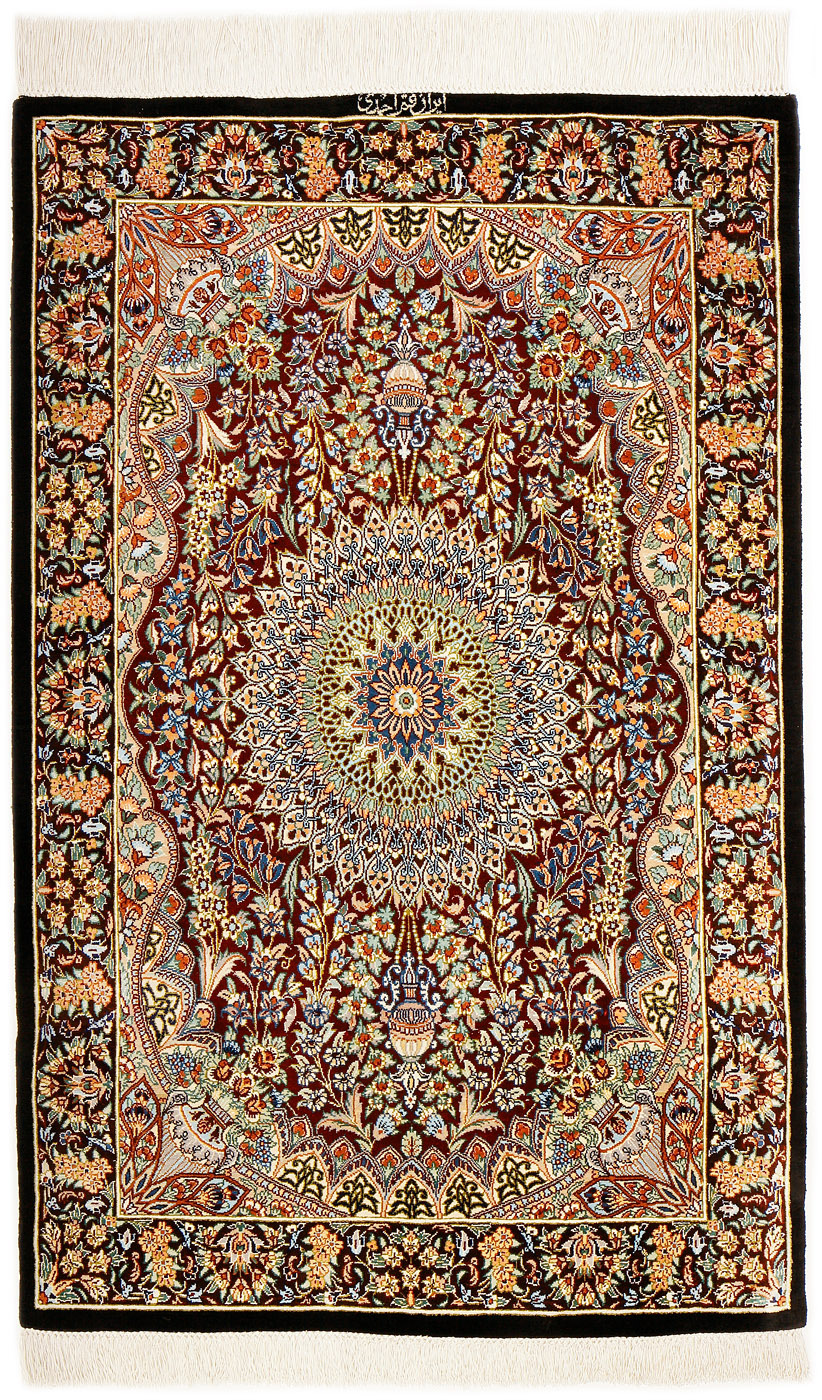 商 品 名 | 手織りペルシャ絨毯 クム、シルク、96x61cm |
