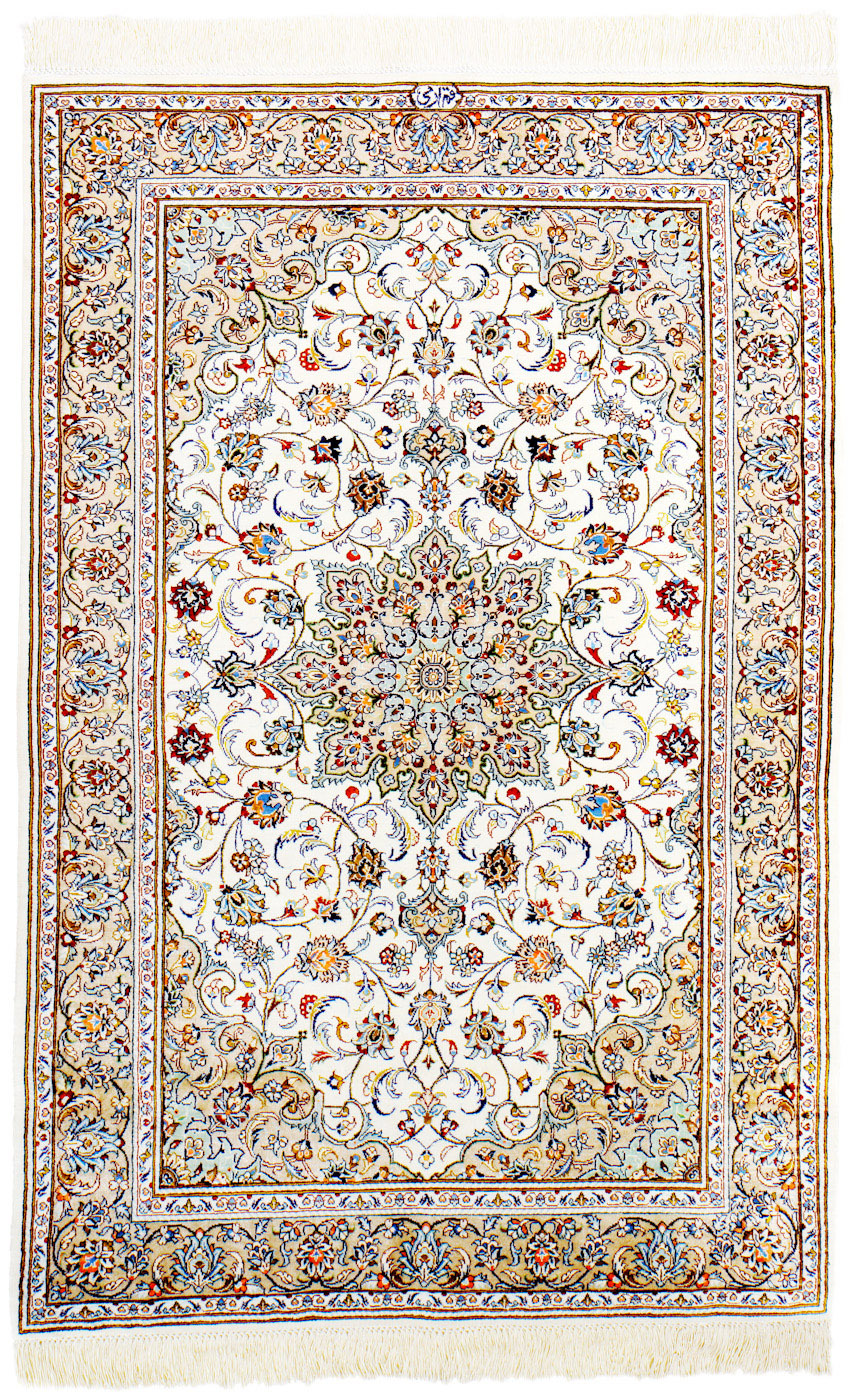 ペルシャ絨毯ペルシャ絨毯大産地クムsilk100whitesize-zaaro-characksale