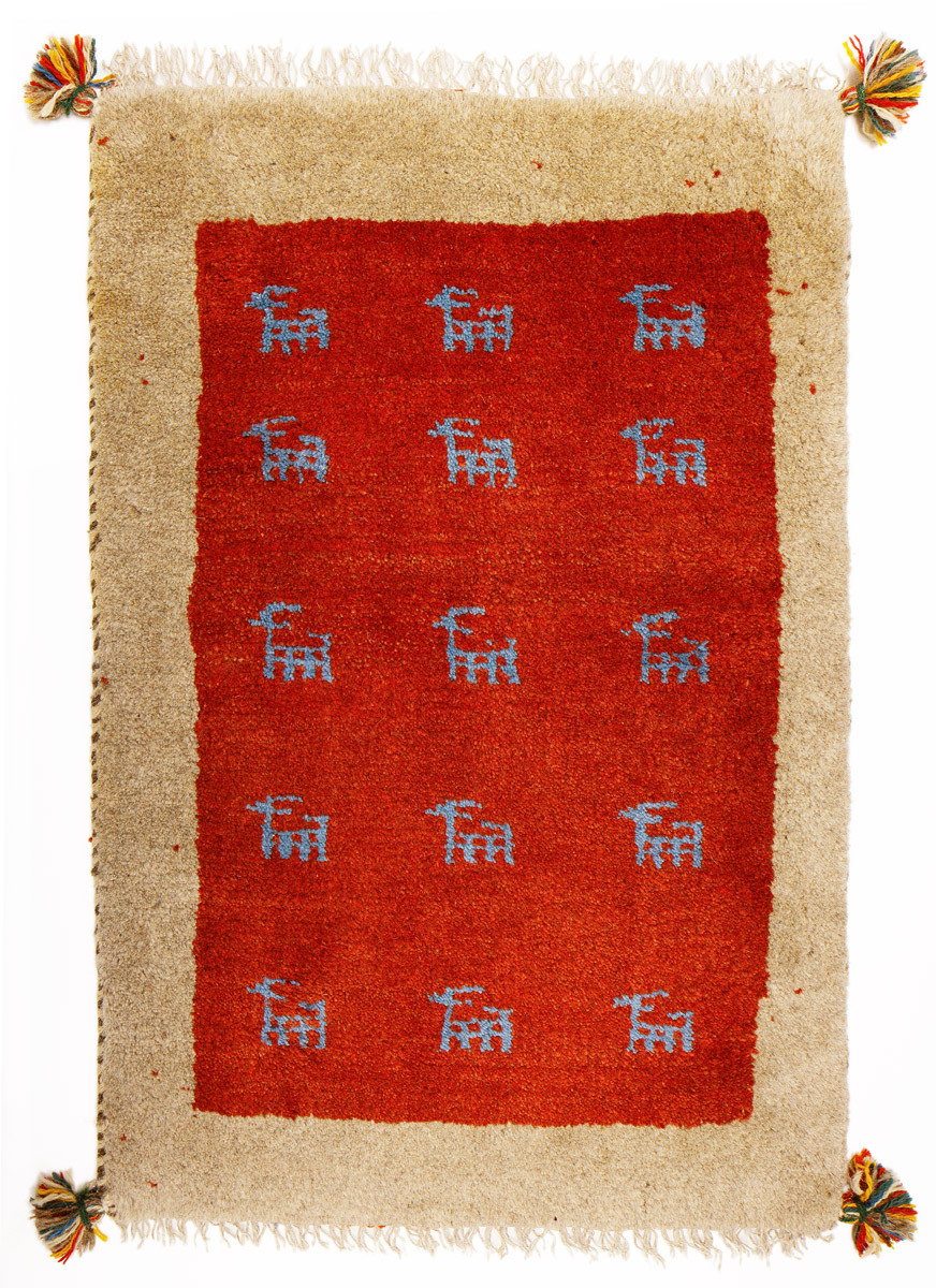| 商 品 名 | 手織りペルシャ絨毯 ギャッベ、ウール、87x57cm |