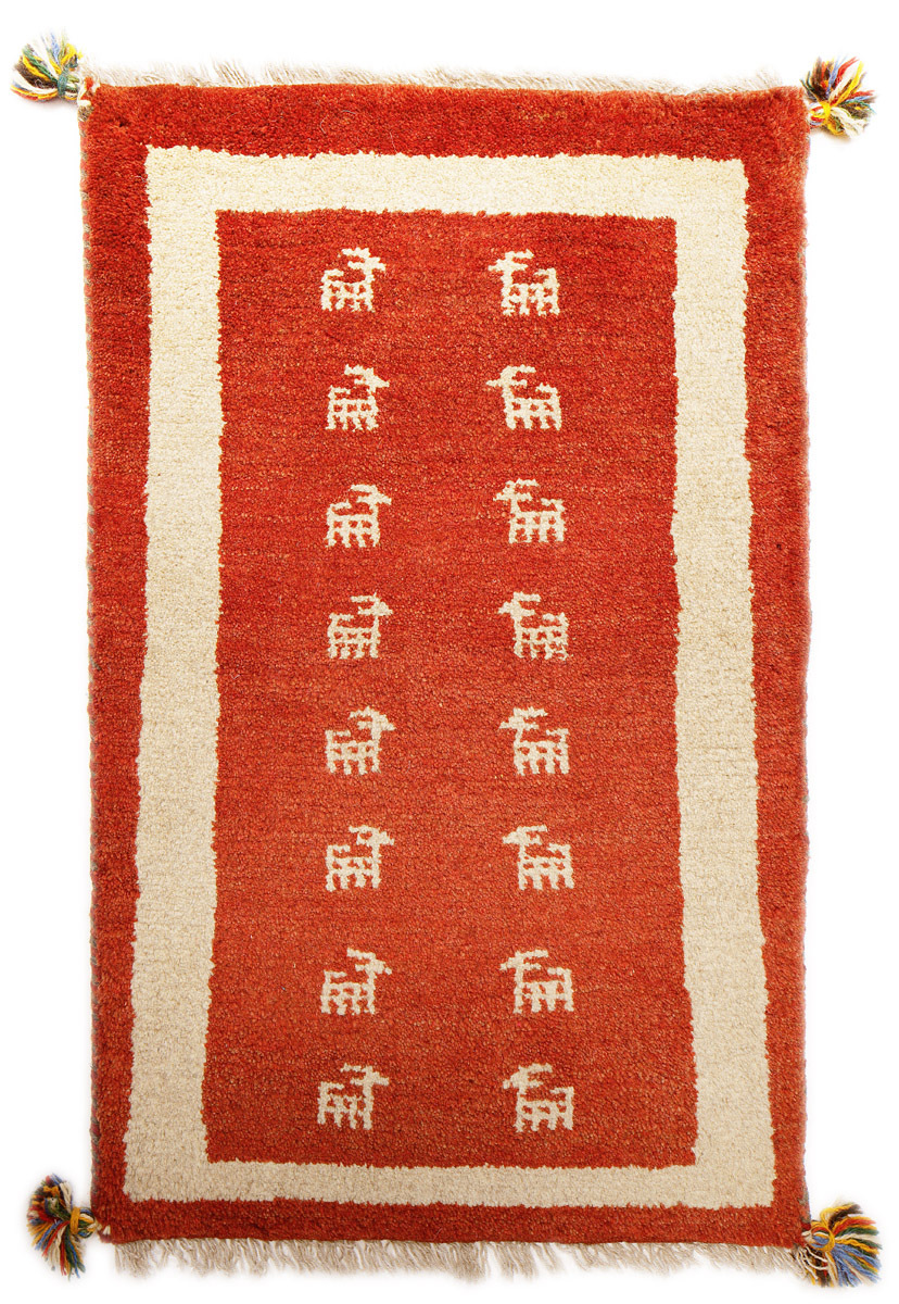 | 商 品 名 | 手織りペルシャ絨毯 ギャッベ、ウール、90x56cm |