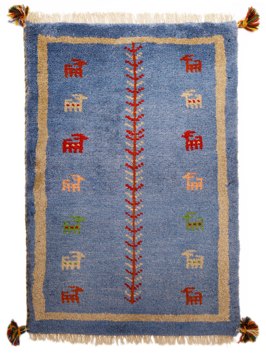 商 品 名 | 手織りペルシャ絨毯 ギャッベ、ウール、88x60cm |