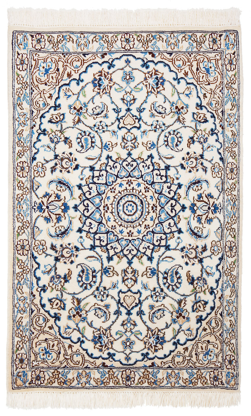 商 品 名 | 手織りペルシャ絨毯 ナイン、ウール(一部シルクを使用)、95x61cm |