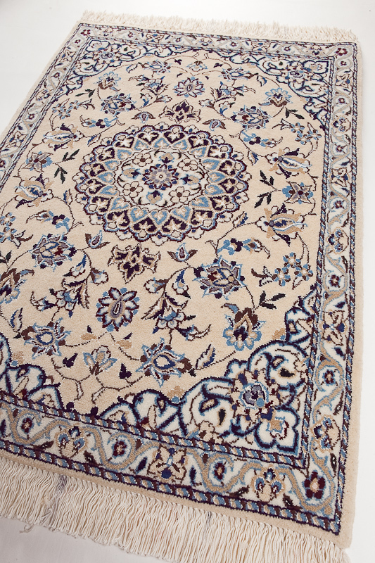 | 商 品 名 | 手織りペルシャ絨毯 ナイン、ウール(一部シルクを使用)、90x60cm |