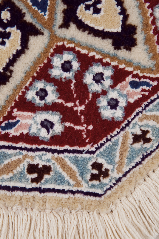 | 商 品 名 | 手織りペルシャ絨毯 ナイン、ウール(一部シルクを使用)、40x40cm |