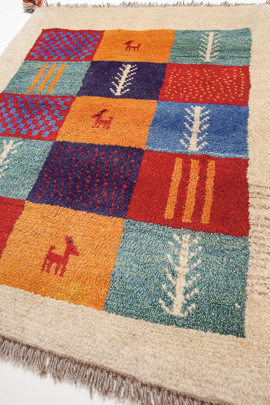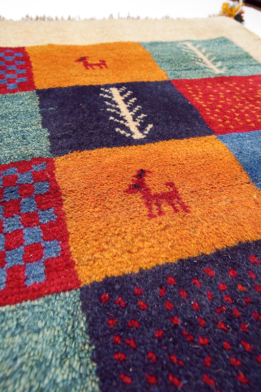 | 商 品 名 | 手織りペルシャ絨毯 ギャッベ、ウール、85x70cm |