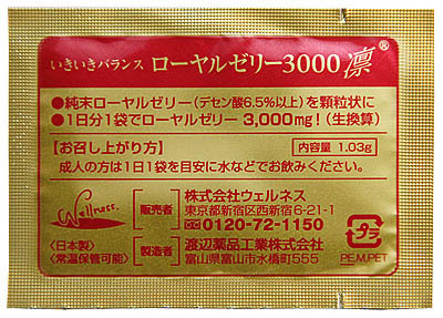 ♪ローヤルゼリー3000凛(りん) お試し6袋 ★いきいきバランス ウェルネス製、生ローヤルゼリー換算3000mg×6袋、約6日分(# w1006)