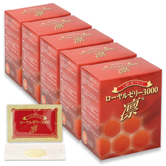 ♪ローヤルゼリー3000凛(りん)、いきいきバランス ウェルネス製、5箱セット、生ローヤルゼリー換算3000mg×150袋、約5ヶ月分(# w1150)